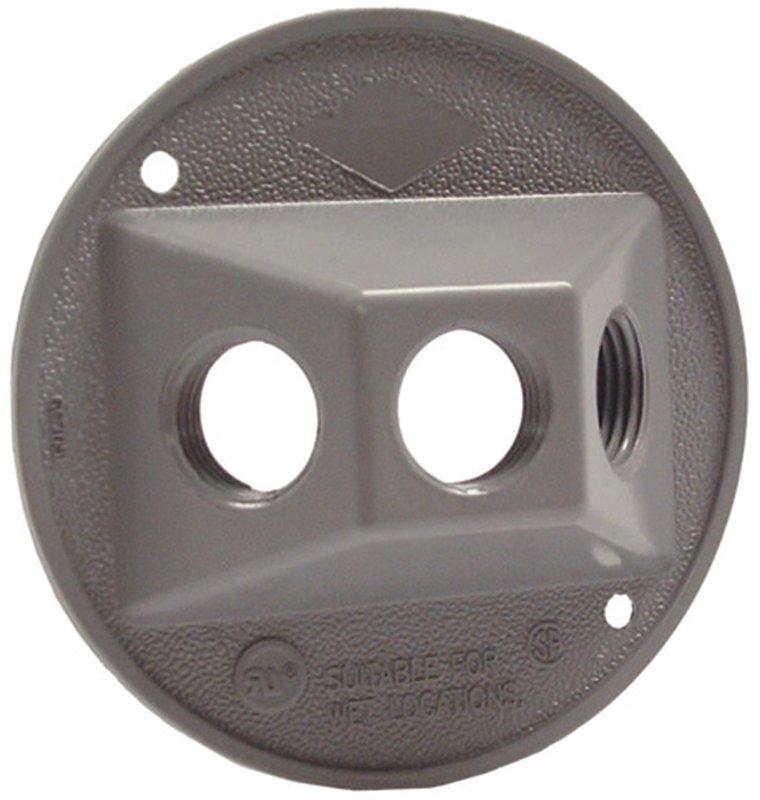 For wet locations. Gasket, screws and plugs included. 4 in cluster cover. Die-cast zinc. Three 1/2 in NPT holes. UL listed.