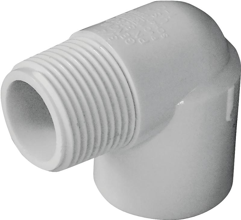IPEX Street Pipe Elbow, 3/4 x 3/4 in Nominal, Slip x MPT Connection, 90 deg Angle, 480 psi Pressure, 140 deg F Operating, SCH 40 Schedule, PVC, White