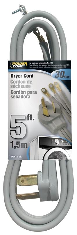 PowerZone Dryer Cord's vinyl construction resists cracking, grease, oils and acids. The molded-on plugs won't pull apart from the cord. The 3-wire cord fits most homes built prior to 1996. It includes strain a relief kit and ring terminals for secure connections.
