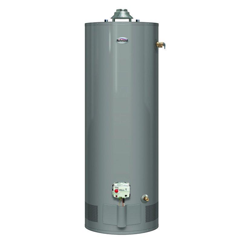 The Richmond® Essential Plus® 40-gal Propane Water Heater comes with a 2 years In Home Labor Warranty and has an energy efficient 32000 Btu burner. This heater provides ample hot water for households with 2-3 people. Its tall profile gives this heater a smaller footprint and allows for easy installation when tank diameter is a factor. The heater also features an FVIR System, an exclusive air/fuel shutoff device that prevents ignition of flammable vapors should they be detected outside the unit. The air intake is designed to be completely maintenance free with no filters to clean or replace. The heater has a 6 years tank warranty and meets or exceeds NAECA and ASHRAE requirements.
