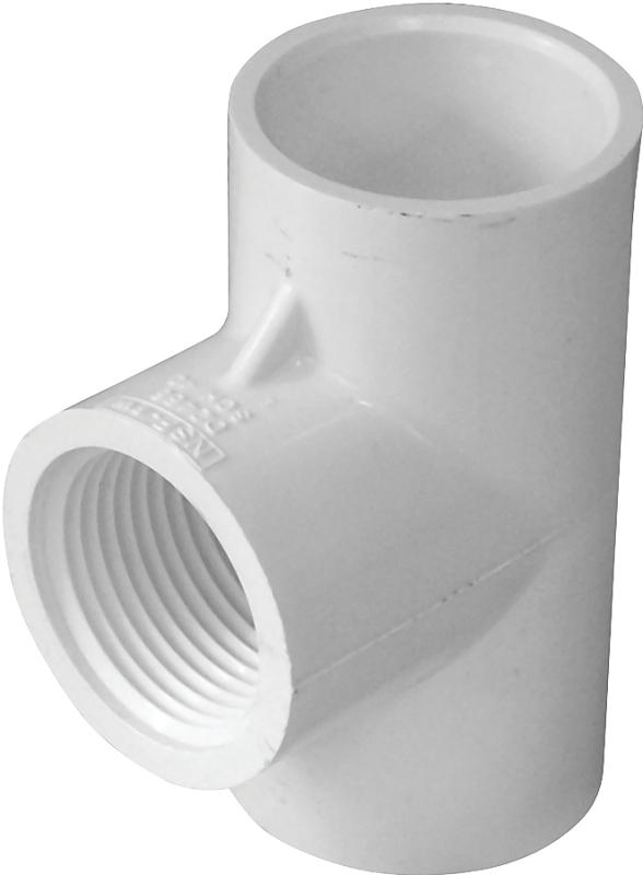 This tee is used to connect an MPT fitting to a run of solvent weld pipe at a 90 deg angle, threaded hubs solvent weld to pipe