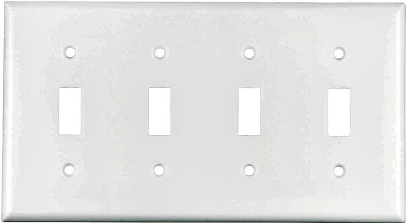 Molded from non-flammable thermoset. Flush fitting, warp-resistant design. Matching screws provided. High gloss finish is soil resistant. Standard size - 4.50 x 8.188 in, boxed.