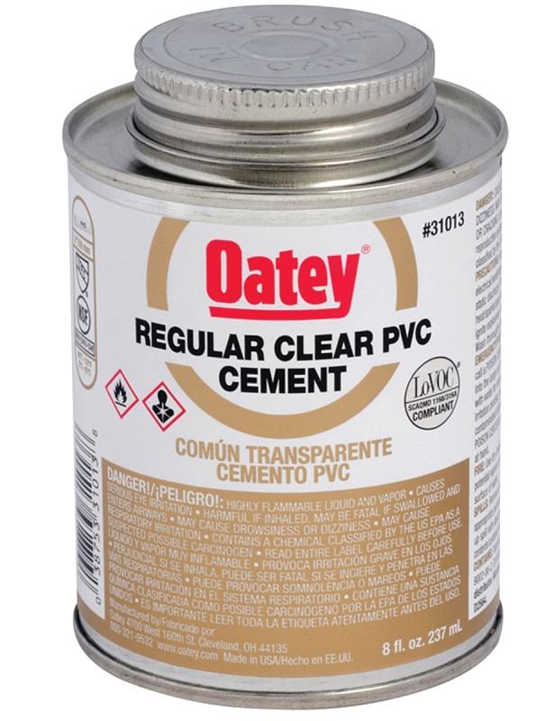 Regular-bodied clear cement recommended for use on PVC pipe and fittings up to 4 in for schedule 40 and up to 2 in for SCH 80 potable water pressure pipe, gas, conduit, drain waste and vent pipe. Flows freely. Sets up quickly. Apply at temperature 40 to 110 deg F. NSF and UPC listed. Exceeds ASTM D-2564.