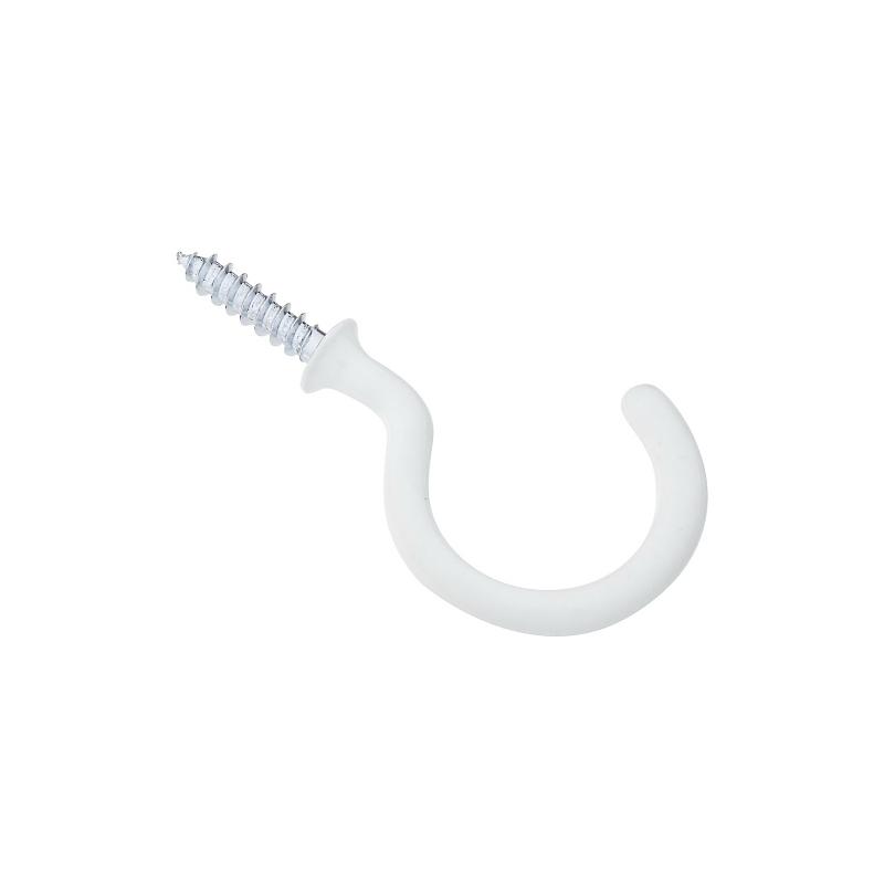 National Hardware Cup Hook, Working Load Limit: 15 lb, Steel, White, Vinyl-Coated