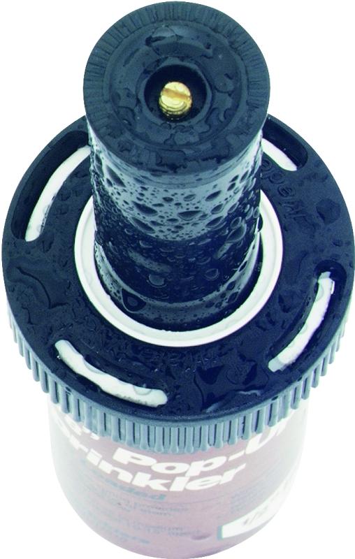 Orbit Pop-Up Sprinkler, 1/2 in Connection, Full-Circle/Part-Circle: Part-Circle, Nozzle Type: Adjustable, Pop-Up Height: 2 in, Operating Range: 15 ft, Plastic, Black, Dimensions: 2.3 in L x 2.3 in W x 4.03 in H