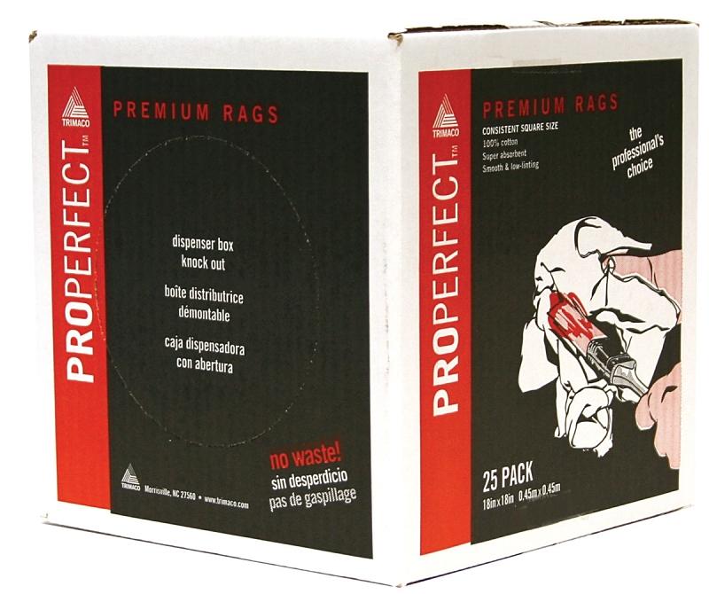 Trimaco's ProPerfect Premium Rags are designed to be the perfect size for painters. Each 100% cotton wiper is cut to a consistent size of 18 x 18 in and packed by count, not by weight. Unlike most boxes of ordinary rags, you'll find no scraps with ProPerfect. Every piece is usable, giving you more rags for your money.