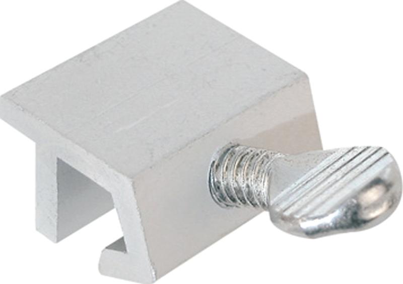 Extruded aluminum lock with steel thumbscrew for use on metal horizontal sliding windows. Finish by tightening thumbscrew with pliers to securely lock windows in closed or ventilating positions.