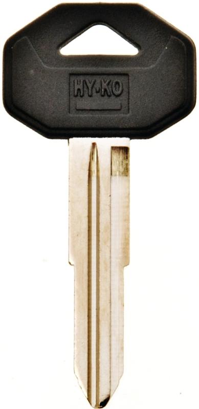 Hy-Ko Automotive Key Blank, Brass/Plastic, Black, Nickel, Dimensions: 2.694 in L x 1.273 in W x 0.136 in D, Suitable for: Mitsubishi Vehicle Locks