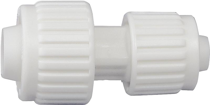 Flair-It fittings are constructed of durable polyoxymethylene (POM) and are compatible with PEX and PB. The patented design consists of a nut and flared insert and requires no tools. The fittings push against the ID and OD of the pipe, creating a strong long-term seal. Flair-It fittings are available in 3/8 to 3/4 in and are stocked in bulk and barcoded versions. Must be ordered in lots of ten. Starter kits are also available. Valves are directional.