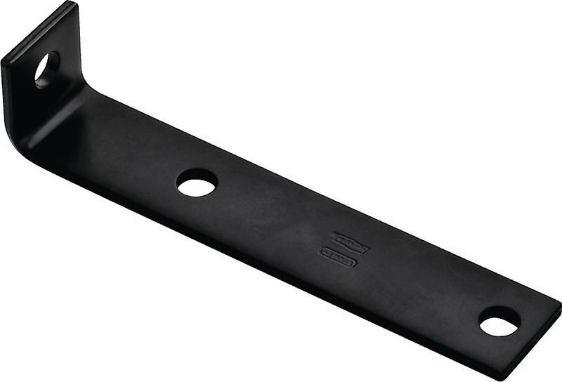 Used to reinforce a 90 deg angle through application on the inside. 1/2 in Dia holes. Extra length on one leg gives extra reach to provide greater stability. Black powder coat finish for improved weather resistance.