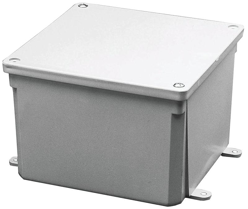 Manufactured from PVC thermoplastic molding compound and featuring gasketed lids attached with stainless steel screws. Offers corrosion resistance and physical properties needed for direct burial applications. Intended for indoor or outdoor use, to provide a degree of protection against contact with enclosed equipment, falling dirt, hose directed water, entry of water during prolonged submersion at a limited depth and external ice formation. UL listed with a NEMA 6P rating per section 314.29.