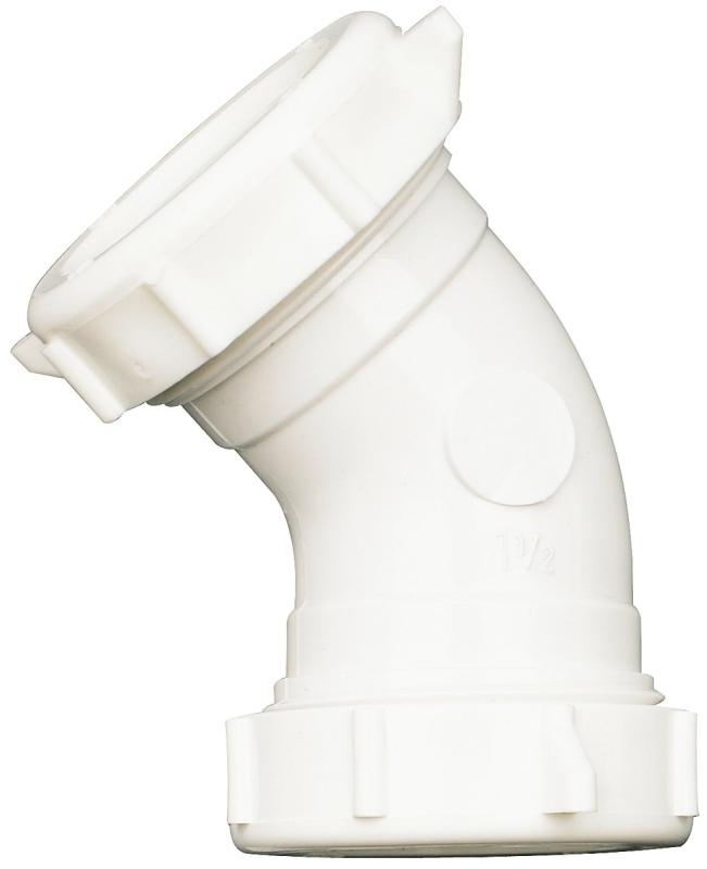 Plumb Pak Drain Pipe Elbow, Nominal Size: 1-1/2 in, Slip-Joint Connection, PVC, White, Includes: (2) 1-1/2 x 1-1/4 in Reducer Washers and (2) Wing Nuts