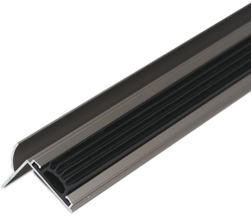 L-shaped DCV 50 door bottom fits both 1-3/8 in and 1-3/4 in doors. Seals between bottom of door and threshold to block out air and moisture. Slotted fastener holes allow easy installation and adjustment. 1-3/32 in height drip cap and 1/2 in height door bottom.