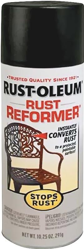 Stop rust in its tracks with Rust-Oleum® STOPS RUST® Rust reformer. A layer of this flat-black coating bonds with rusty metal and instantly transforms it into a non-rusting surface. No need to sand down to bare metal, simply spray directly onto rust.