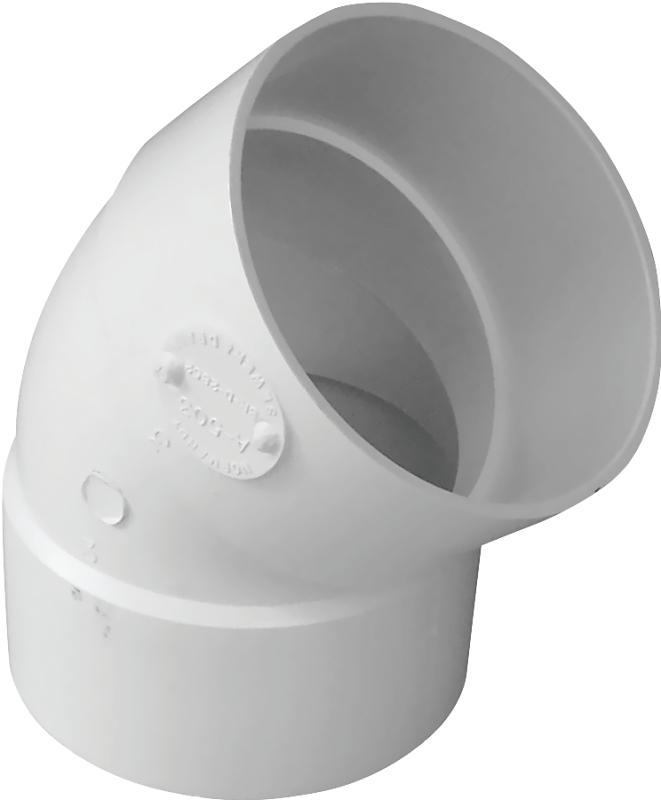 IPEX Sewer Pipe Elbow, Nominal Size: 3 in, Hub Connection, Angle: 45 deg, PVC, White