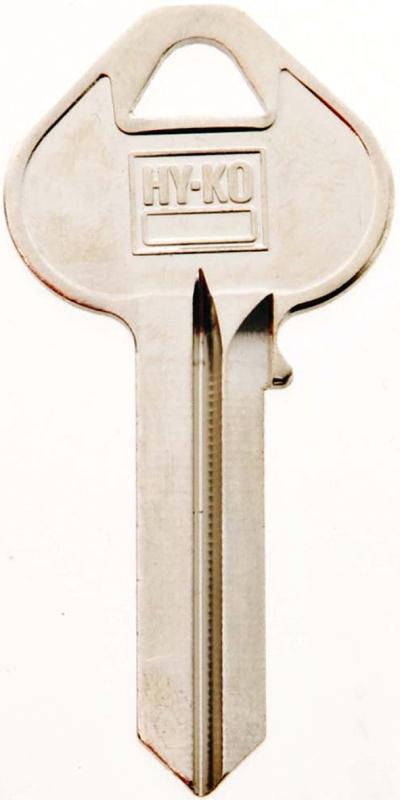 Hy-Ko Key Blank, Brass, Nickel, Dimensions: 2.128 in L x 1.033 in W x 0.087 in D, Suitable for: Russwin and Corbin Cabinet, House Locks and Padlocks