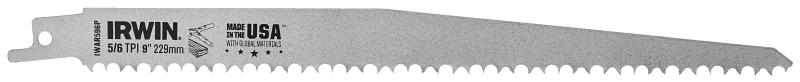Irwin Reciprocating Saw Blade, Bi-Metal, Cutting Edge Material: HSS, Teeth per Inch: 5/6, Teeth Type: Precision, 9 in L, 0.74 in W, 0.05 in Thick, Applicable Materials: Metal, Plastic, Wood