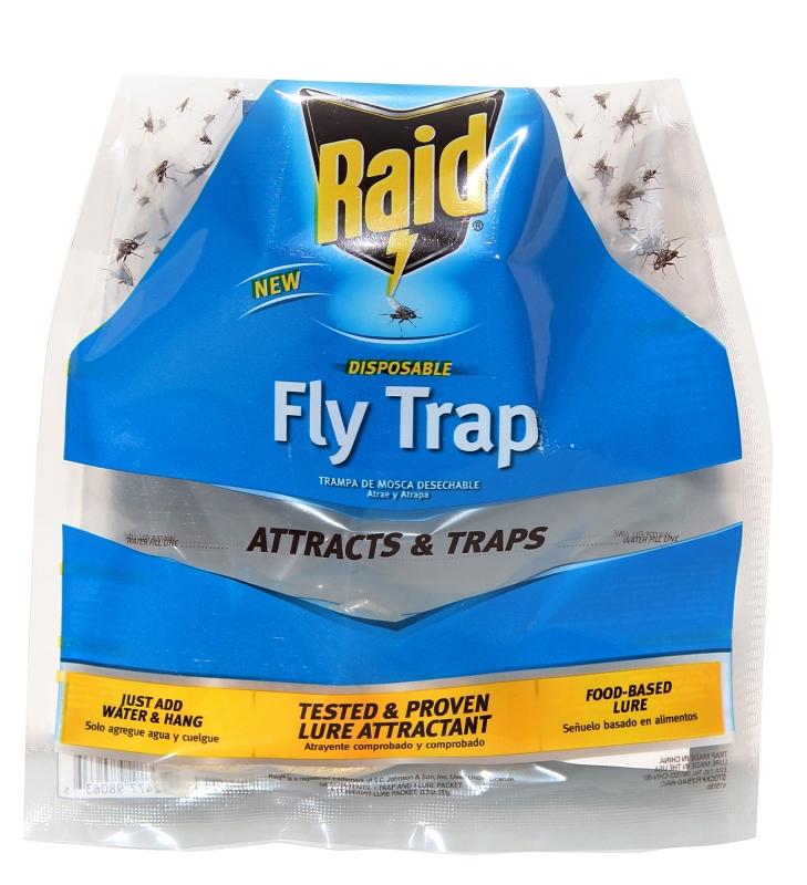The Raid fly trap, traps and kills common flies and many other flying insects with no poisons or insecticides. Our trap utilizes a proven food based lure along with a UV pigment to attract flies. The patented entry holes entice the pests to enter the trap. Once the pests enter, they are unable to escape, then drown. The trap can be used effectively for both indoor and outdoor living spaces.