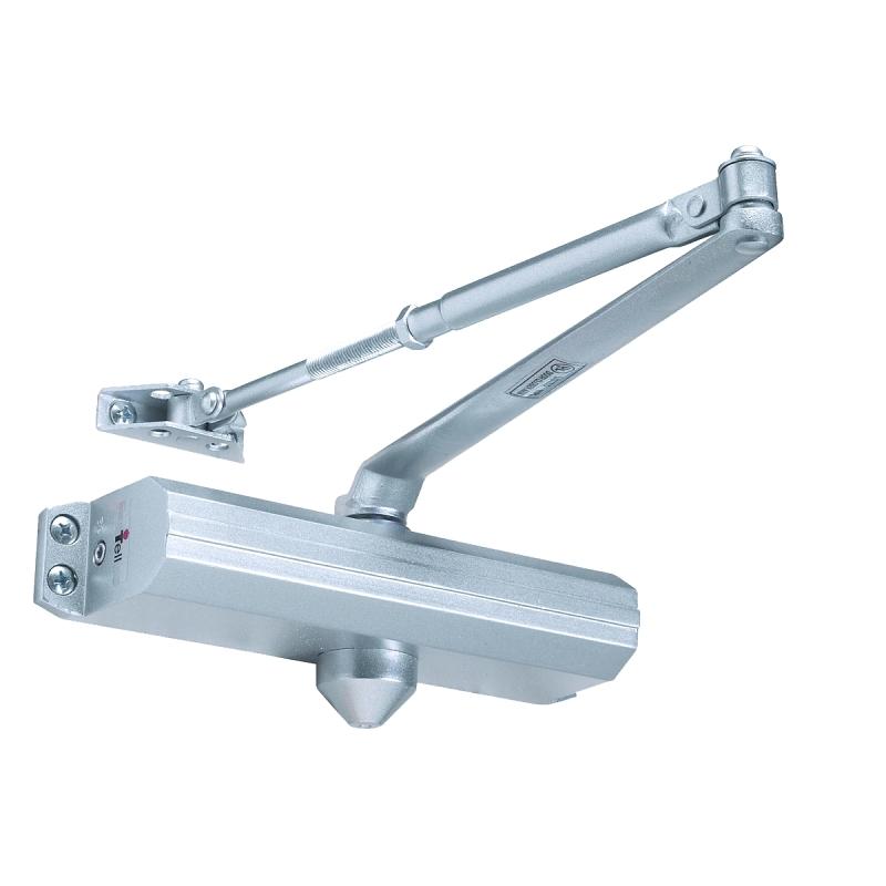 Grade 1 surface applied closers. Complies with ANSI A156.4, Grade 1, 2 million cycles, UL/ULC listed up to 3 hrs fire rated performance. Non-handed. Tri-pack mounting - regular, top jamb and parallel arm applications. Spring power adjustable 1 - 4 and 3 - 6 sizes. Adjustable back check, hydraulic - providing cushioning and preventing uncontrolled openings of the door. Adjustable valves, independent, non-critical (sweep and latch), consistent closing speeds. Metal screws fasteners included for hollow metal and aluminum mounting applications. Wood screws included for wood door mounting applications. Thru-bolts optional. Door range up to 180 deg. Door Preparation: 9-1/16 in horizontal and 3/4 in vertical mounting hole locations (retrofits traditional closer).