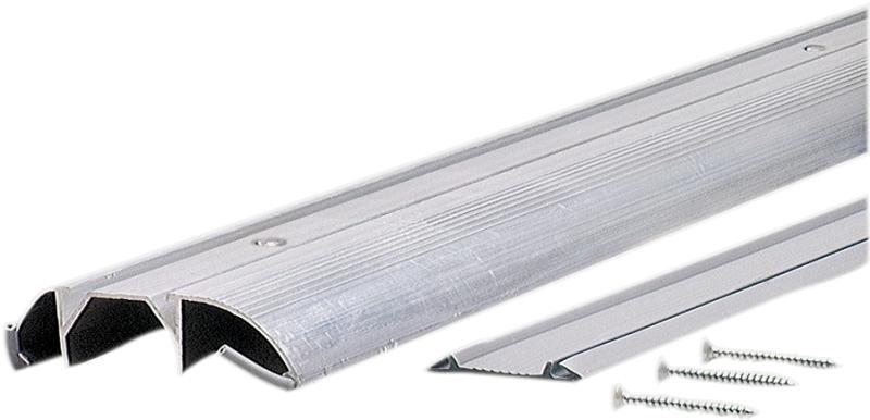 Economy-grade standard high rug extruded aluminum threshold, with vinyl seal. Designed for use with thick pile carpet. Height of 1-1/8 in.