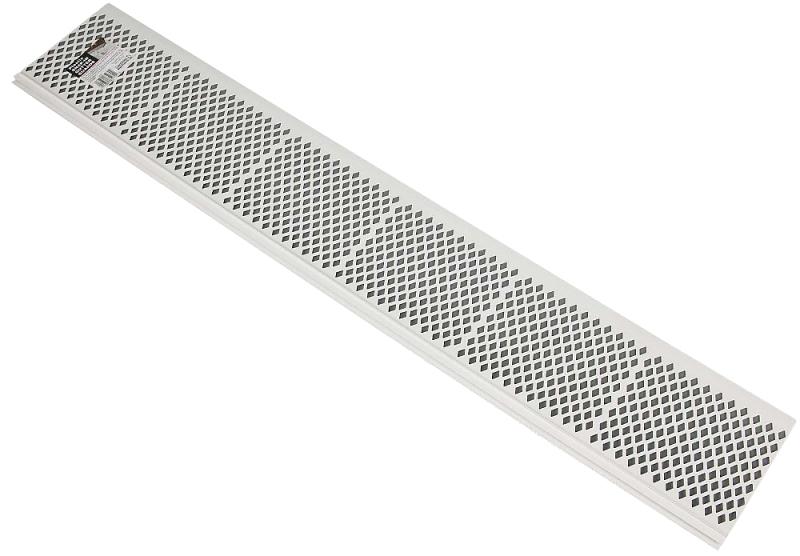 3 ft plastic mesh protects gutter, downspout and drain from leaves, stones and other debris. Slides under the shingles and hooks to the front edge of the gutter. Made of rigid PVC. Will not collapse under debris. No special tools required. Fits standard "K" style aluminum, steel or plastic gutters. Fits 4 in, 5 in and 6 in gutters. Dimensions 36 in L x 6.5 in W x 0.5 in H.