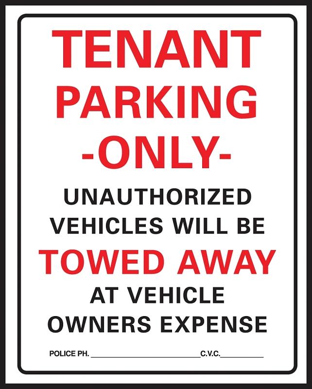 | Legend | TENANT PARKING ONLY UNAUTHORIZED VEHICLES WILL BE TOWED AWAY AT VEHICLE OWNERS EXPENSE |
