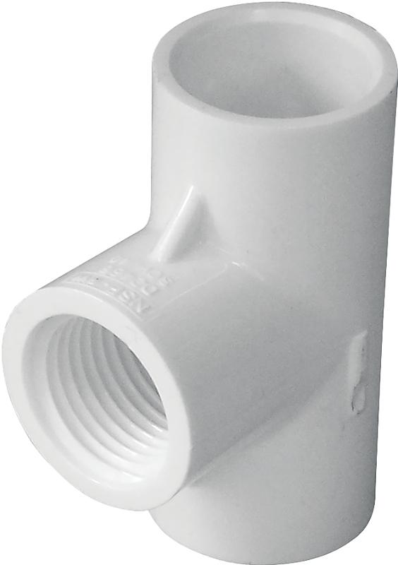• This tee is used to connect an MPT fitting to a run of solvent weld pipe at a 90 deg angle, threaded hubs solvent weld to pipe