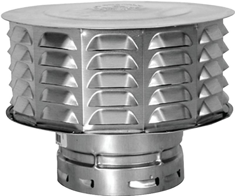Use as a ventilation cap as well as Type B vent termination. Protects against waste gases spilling back into the structure through the appliances draft hood.