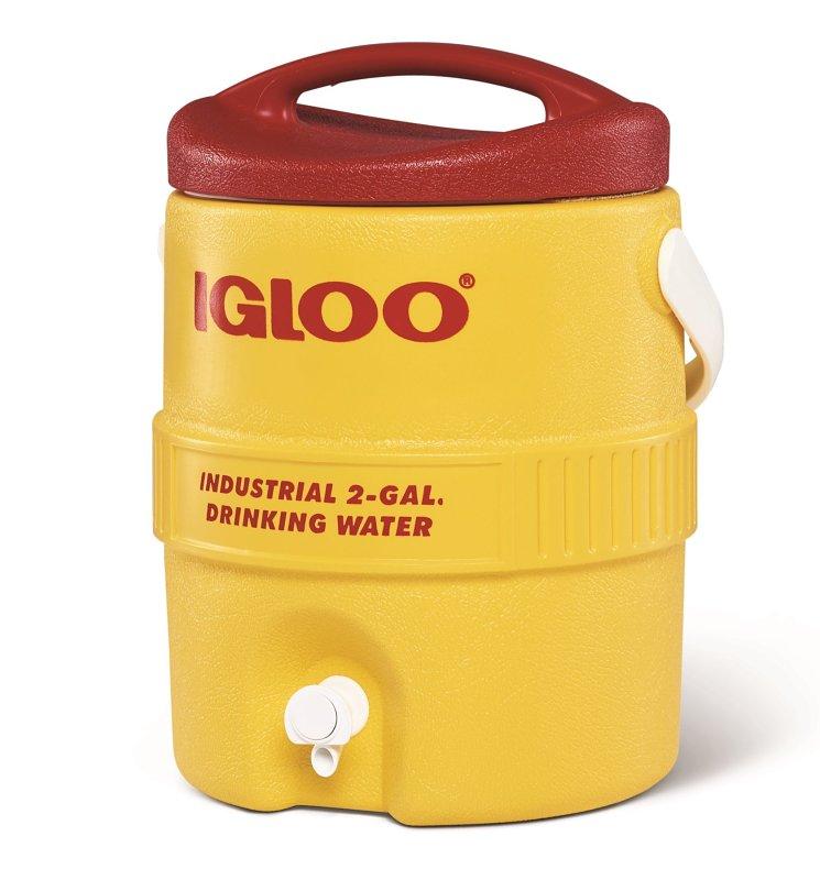 Reinforced bail handle. Plastic, recessed, drip-proof, pushbutton spigot. Wide mouth, pressure fit lid has molded-in contour handle. Safety color for easy identification, will not fade in direct sunlight. All plastic, rustproof construction. Sanitary white liner. Foamed-in-place Ultratherm insulation. Drinking Water imprint meets OSHA requirements.