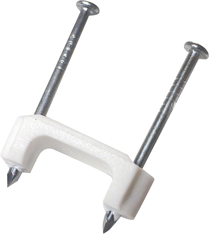 For metallic and non-metallic cording and cable. Easy to install, drive both zinc-plated nails together without splitting wood. Recessed nail heads for minimum exposure. Smooth saddle (3/8 in width) prevents damage to insulation. High-grade, injection molded polypropylene resists rot, rust, deterioration and effects of extreme temperature, non-conductive for safe and secure cable fastening.
