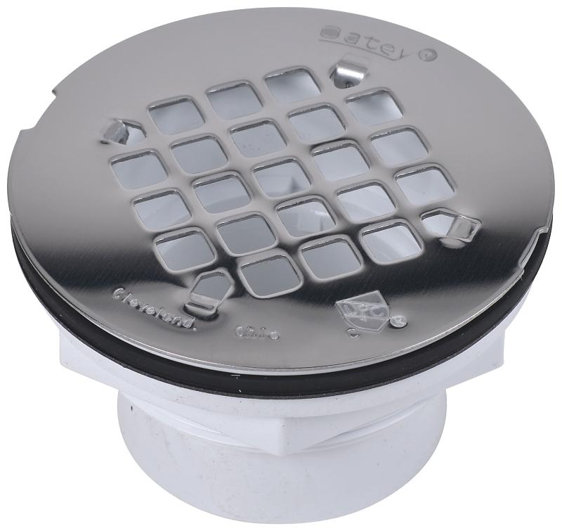 Oatey® 101 PS Series solvent weld shower drain is designed for easy installation by sealing to pre-formed shower stall bases with fiber and rubber washers.