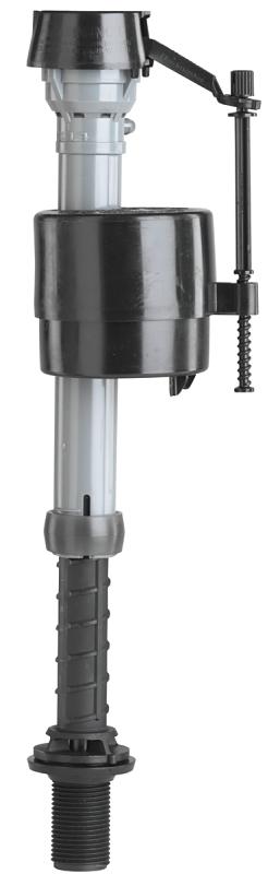 Quiet, corrosion-resistant replacement for outdated ballcock, float ball and rod arm. Withstands harsh water and constant use. Fits most standard tanks including 1.6 gpf models. "Signals" leaks or water waste by automatically turning on/off during periods of non-use. Backflow preventer guards against toilet water contamination of fresh water supply. Turn-and-lock cap for easy seal replacement - no tools needed. Water level adjusts easily for ideal flush. Easy to install, no special tools required. Meets all anti-siphon codes.