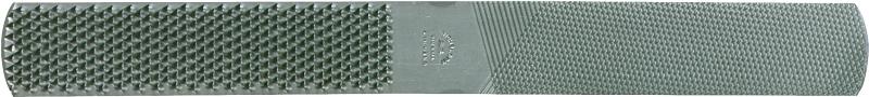 Half round shape and has file section and rasp section on both flat side and half-round side. For the homeowner, home craftsman, boat builder and mechanic.