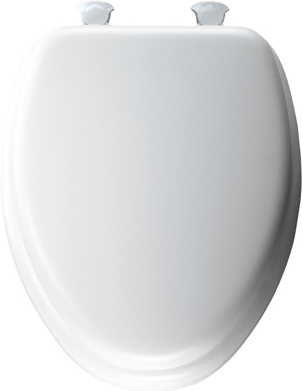 Cushioned vinyl with molded wood core. Easy-Clean & Change allows for removal of the seat for easy cleaning and replacement. For residential use only. Made in USA.