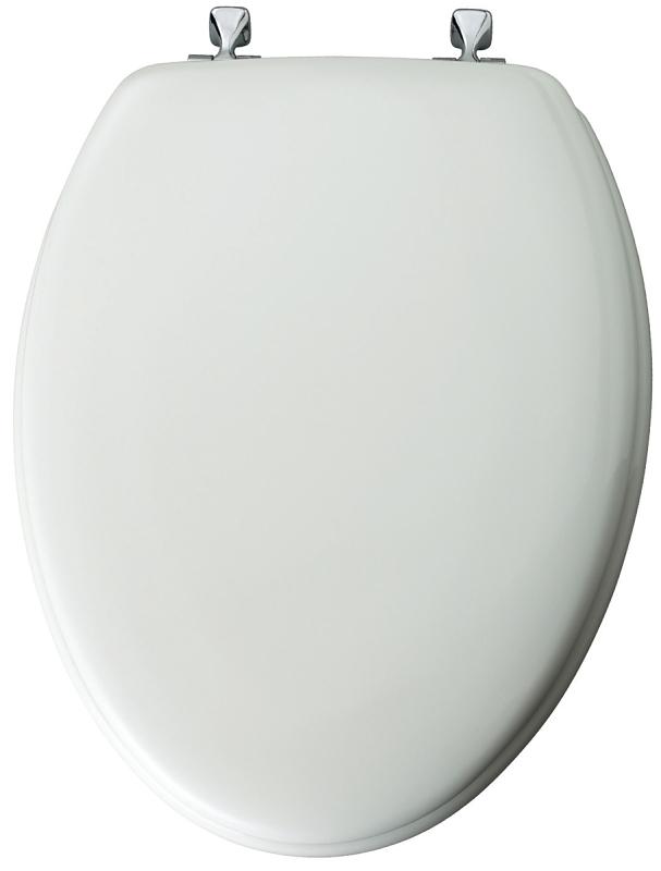This molded wood seat provides durability and stability. The chrome metal hinges are stylish and long-lasting. With the STA-TITE seat fastening system, the seat does not shift around and stays firmly attached to the toilet. For residential use only. Made in USA.