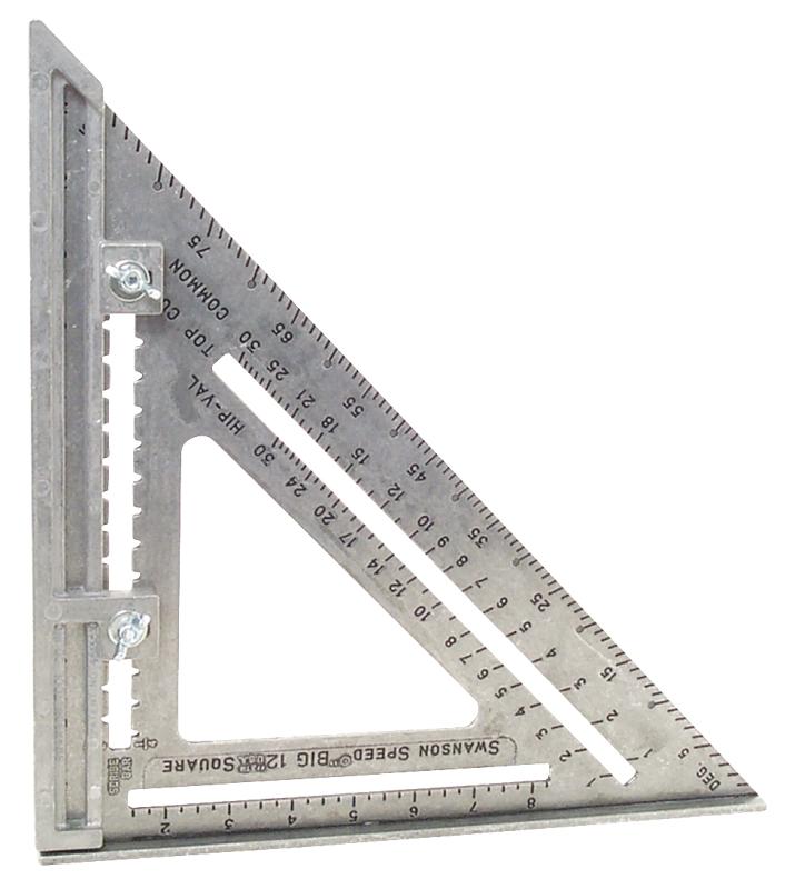 The Big 12® is seven tools in one like a framing square, try square, miter square, protractor, saw guide, stair gauge and out-of-square corner angle finder. It's constructed of heavy-gauge aluminum alloy and includes the layout bar for use in determining out-of-square corners. Also included are the Swanson® blue book for roof and stairway layout and layout bar with hardware.