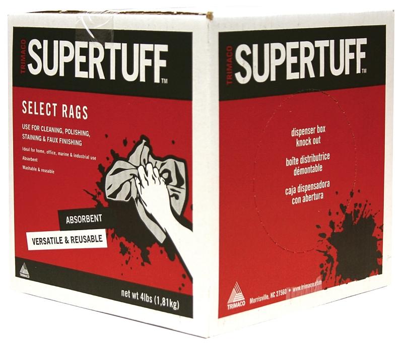 Trimaco SuperTuff pre-cut rag colored t-shirt knit rags. Absorbent and colorfast. Use throughout the home, office, marine and industry. Reusable and machine washable. Use for staining, polishing, cleaning and faux finishing.