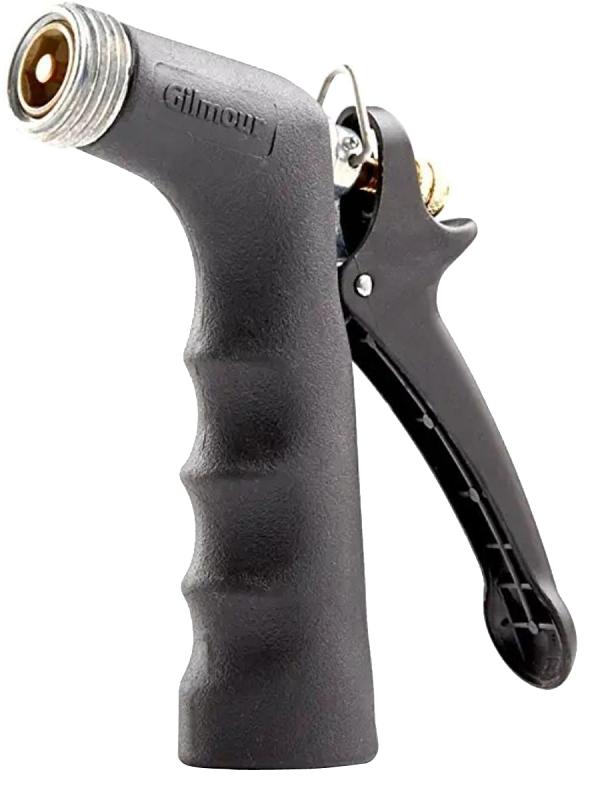 Gilmour Watering Nozzle, GHT Connection, 2.5 to 5 gpm, 60 psi, Aluminum/Stainless Steel, Black, Pistol Grip Handle, Dimensions: 5-1/2 in L