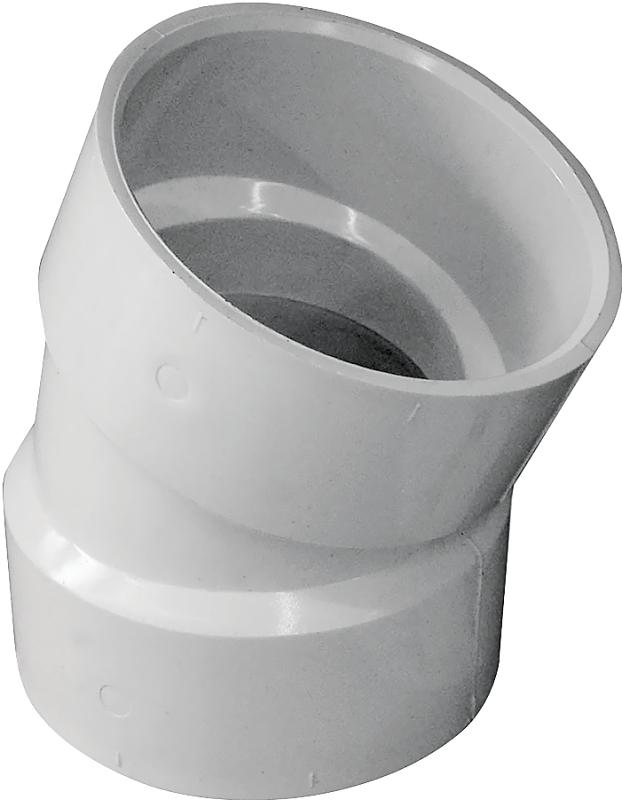 Canplas Pipe Elbow, Nominal Size: 3 in, Hub Connection, Angle: 22.5 deg, PVC, White