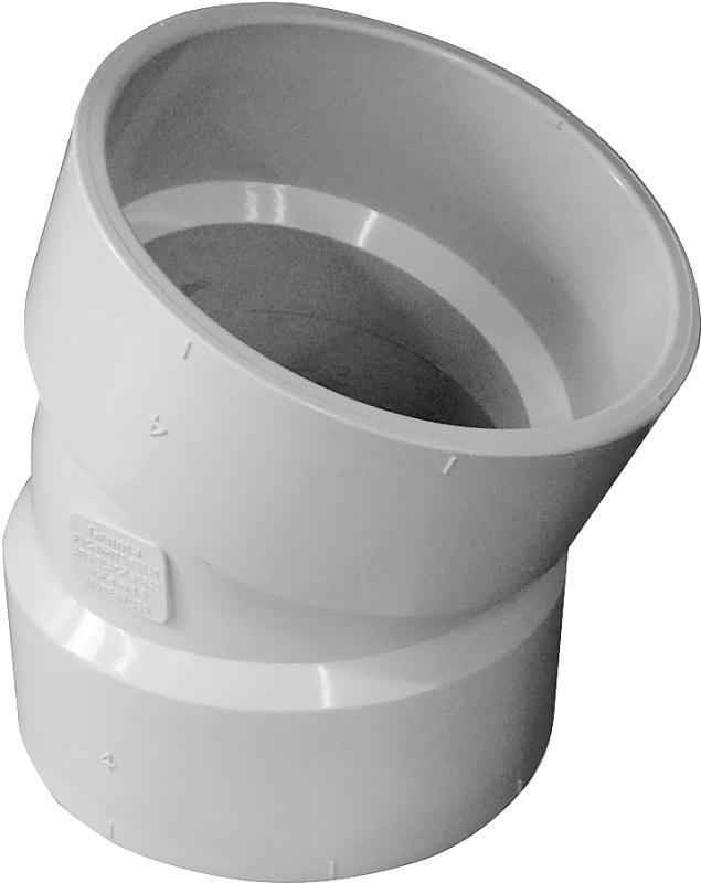 Canplas Pipe Elbow, Nominal Size: 4 in, Hub Connection, Angle: 22.5 deg, PVC, White