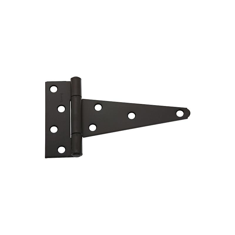 National Hardware T-Hinge, 48 lb Weight, Door Leaf Height: 6 in, Door Leaf Width: 2.15 in, Door Leaf Thickness: 0.095 in, Frame Leaf Height: 1.565 in, Frame Leaf Width: 4-1/4 in, Pin Type: Tight, Pin Diameter: 0.326 in, Pin Material: Aluminum, Screw Mounting, Number of Mounting Holes: 8, Steel, Black, Dimensions: 4-1/4 in W