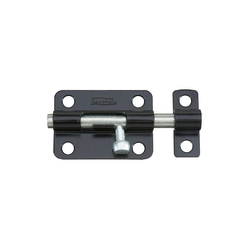 National Hardware Barrel Bolt, Bolt Head Size: 0.32 in Dia, Bolt Length: 3 in, Steel, Black, 1.53 in W, 1/2 in H, Includes: Durable Steel Case, Strike and Bolt