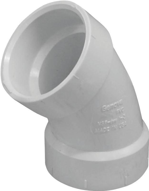 Canplas Sanitary Pipe Elbow, Nominal Size: 2 in, Hub Connection, Angle: 45 deg, PVC, White