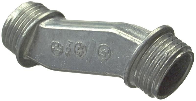 Zinc die-cast. Use as an offset connector between two enclosures. Offsets the axis of the raceway 3/4 in. UL approved.