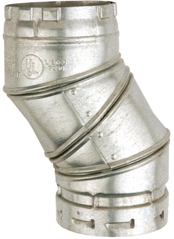 The adjustable 90 deg elbow is constructed of four sections for smoother bends and less resistance. The elbow adjusts from 0 to 90 deg easily in order to clear rafters or ceiling joists.