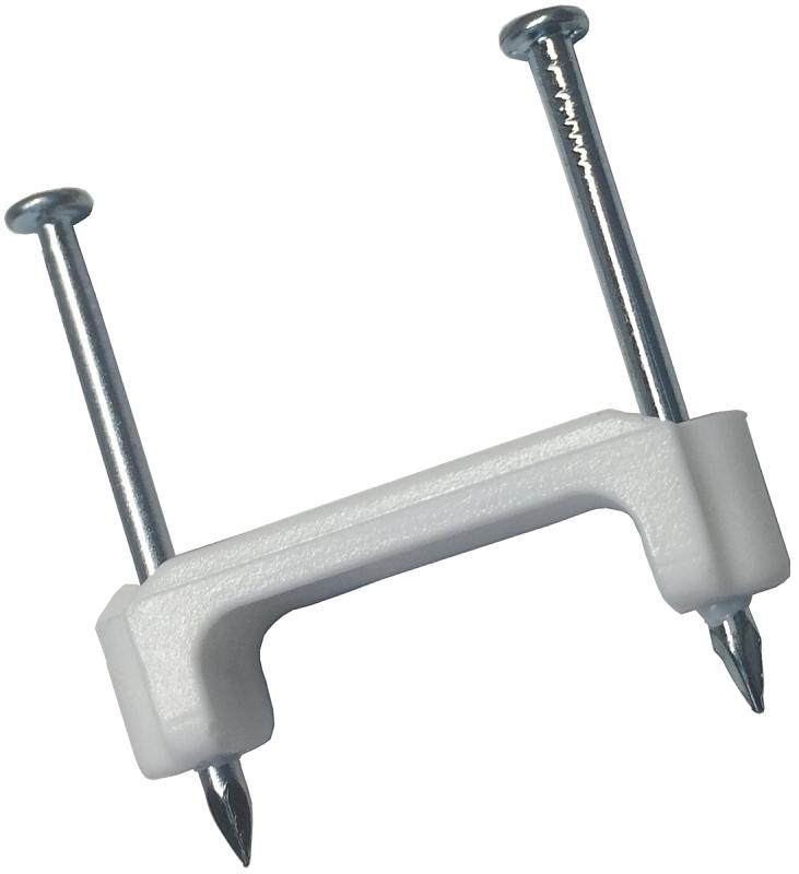 For metallic and non-metallic cording and cable. Easy to install, drive both zinc-plated nails together without splitting wood. Recessed nail heads for minimum exposure. Smooth saddle (3/8 in width) prevents damage to insulation. High-grade, injection molded polypropylene resists rot, rust, deterioration and effects of extreme temperature, non-conductive for safe and secure cable fastening.