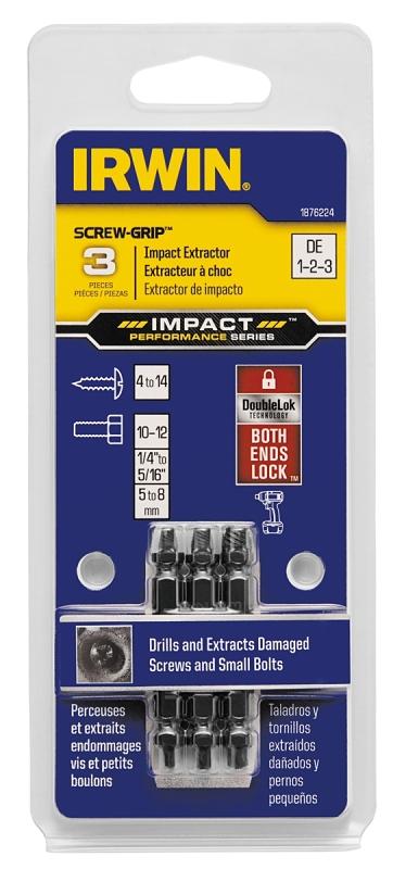Irwin SCREW-GRIP Screw Extractor Set, Double-Ended, HSS, Number of Pieces: 3, Includes: DE-1, DE-2 and DE-3 Screw Extractors