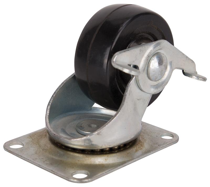Black rubber wheel with on and off break. Use for heavy objects. Plate size: 3-7/64 x 4-1/8 in.