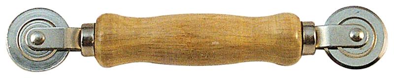 This item is a screen rolling tool with wood handle used primarily for installing fiberglass screen fabric into window screens and screen doors. Designed for standard-duty usage. It is a combination tool with a 1-1/2 in x 3/32 in convex steel roller at one end and a 1-1/2 x 1/8 in concave steel roller at the other. To be used with vinyl screen spline sizes 0.130 in up to 0.180 in.
