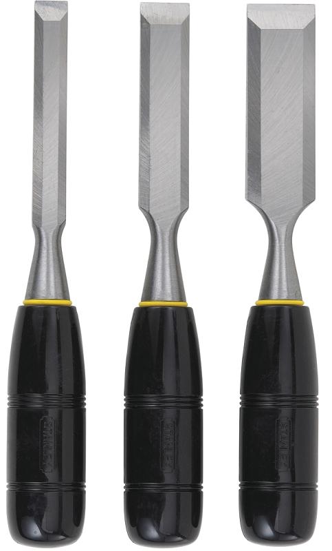 Blades are carbon-steel for durability and strength with black polypropylene handle that resists deformation. Heavy-duty strike caps are crowned for centering blows and durability. Includes 1/2 in, 3/4 in and 1 in. Overall length of 7-3/4 in.